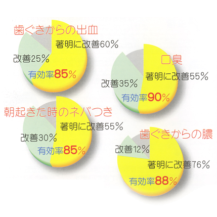 | 1週間後の感想 | 「気になっていた口の匂いがなくなりました。歯ぐきが引き締まった感じです。噛んだときの違和感もなくなりました。」 |
