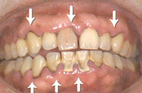 | 歯ぐきの痛み、出血、腫れが見られます。 「最近痛くて歯が磨けないです。」 |