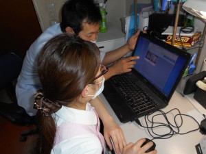 しかしながら、加藤歯科医院の歯科技工士の仕事は技工物作製だけではありません。よりよい技工物を作るために、患者さんと接する場面もあります。例えば、院長・患者さん・歯科技工士でディスカッションしたり、セレックの設計時には患者さんの疑問に答えたり、患者さんに必要な情報を提供したりなど多岐に渡ります。他には、各種セミナーに参加し院内で情報を共有するために発表したり、新しい技術を取り込み問題に直面した時に分析・解決したり、情報提供のためにツールを作成したり、業者と交渉・折衝したりと様々です。技工以外の能力も活用したい方、色々なことにチャレンジしたい方も歓迎します。
