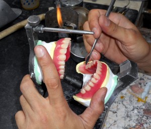 ※当医院は予約制ではありませんので、来院される患者さんに早急に対応することがあります。前日来院された患者さんの作業模型作り、咬合器装着などから始まり、当日来院された患者さんから採得した印象のチェック・石膏流し、破損したデンチャーの修理、テックやメタルの研磨などがあります。外注時に技工指示書を作成し、模型の管理・材料の見直しなども行います。それらを実施しながら、次回来院予定日に向けて保険・自費補綴物を製作します。