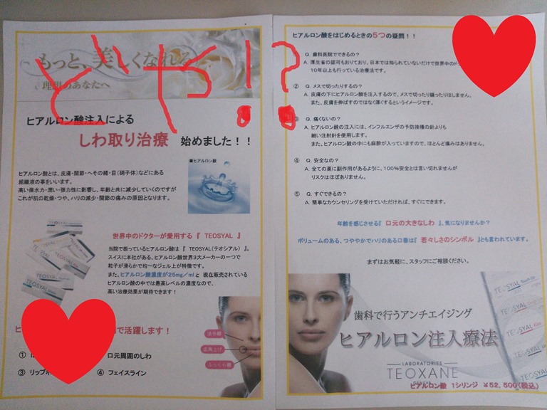 てなわけで、上記の小冊子は1階入り口のラックや2階待合室にて 無料で配布しておりますので、どうぞご自由にお持ち帰りください☆ 徳永が院長に4回ダメ出しを食らった、ヒアルロン酸第一弾チラシもお願いします☆ ↑これです☆ 宜しくお願いします!