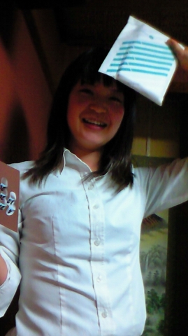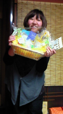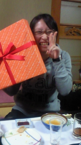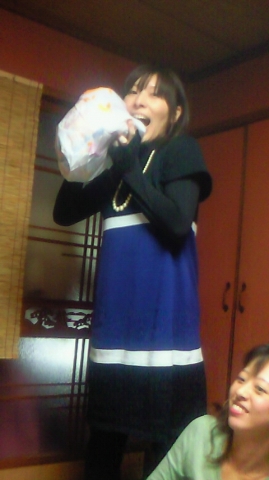 一位になった人から好きなものをとっていくシステムなので、皆それぞれ欲しいものが手に入った模様。 無論私もです。 そうです。ドライヤー 家にドライヤーがない不憫な私に気を使って最後まで残しておいてくれました。 私ビンゴしたの最後の方だったのに・・優しい。 いつものことながら洋子さんが、デロンデロンしてました。 「あなたいいよー」とか「これ、水分パックやん」とか「お兄ちゃん大ー好き」 とか名言を残してくれました。 でも、きっと本人は覚えてないと思います。 ↑↑ 蜂谷さんの髪の毛がいい臭いがするとかで、酔っ払い二人は親の仇とばかりに嗅いでました