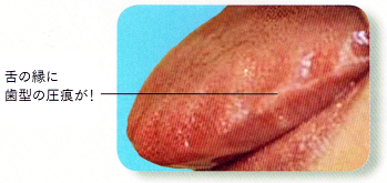 強く噛むと、舌が緊張し歯列を圧迫するので歯型が舌にクッキリ付きます。