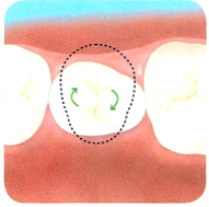 歯を動かす方向に向かって倒れた歯を立てるのが苦手です。