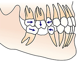 両隣の歯は抜けた歯の方へ傾いてきます。