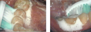 どんな効果があるの?1.唾液の分泌を促進高齢者・ドライマウスの患者さんへ 2.歯肉に対してマッサージ効果あり矯正・歯周病の患者さんへ 3.歯牙・歯肉に対してやさしいブラッシング圧の強い患者さんへ 過圧防止センサー・・・ハンドルに振動でお知らせ 4.毛先から4~5ミリ先のプラーク除去(液体流動力効果)インプラント・矯正の患者さんへ 食器洗浄機のように唾液で汚れを落とします。 5.ステイン除去・付着防止喫煙者、ホワイトニングの患者さんへ 6.簡単に効率よく磨けるお酒を飲んだ後もお手軽にブラッシング 斜め45度でゴシゴシとこすらず1ヵ所約4秒軽く当ててすべらせる様にブラシを移動させます。 どんな機能があるの?2種類のソニッケアーからお選びいただけます。 フレックスケアー プラチナ プロフェッショナル(17,900円 税込)3種類のブラッシングモードと3段階の強さ設定があります。9通りの組み合わせから自分好みにご使用いただけます。また過圧防止センサーがついておりますので、強く当てすぎてもハンドルに振動で伝えて、歯と歯ぐきをやさしくブラッシングすることができます。 ヘルシーホワイトプロフェッショナル(9,500円 税込)圧力センサー機能がついてなく、また、使えるモードはプラチナより少ないですが、価格を抑えて利用しやすいメリットがあります。電動歯ブラシを始めてみようかなと思う方には最適です。 口腔内状況やニーズによって選べるブラシブラシはテーラーメイドで、歯科医師・歯科衛生士が患者さんのお口の中の状況を確認し、最適なブラシを選択します。 1.インターケア