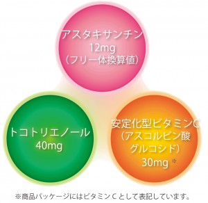 アスタキサンチンを高配合(1日あたり12mg)し、さらにスーパービタミンEといわれるパーム椰子由来の希少成分トコトリエノールと安定型ビタミンCを配合した、毎日の健康を維持するためのサポートサプリメントです。長年のアスタキサンチン研究を生かし、医療機関向けに開発されたものです。 脂溶性の天然アスタキサンチンとトコトリノール、水溶性のビタミンCをバランスよく配合し幅広く健康をサポートします。 ※アスタリールACTは、健康補助食品です。